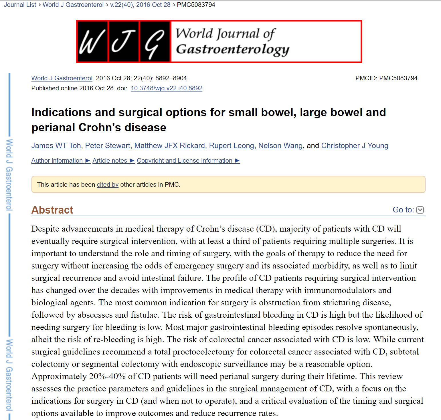 Please click on our publication below for further information regarding the "Indications and surgical options for small bowel, large bowel and perianal Crohn's Disease".